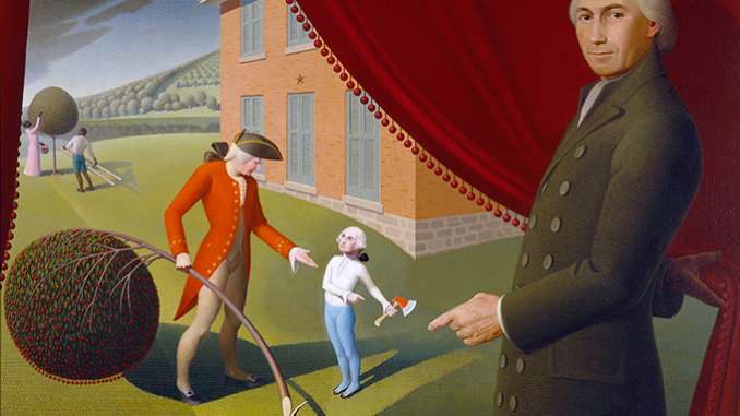 NOTA: La anécdota de la tala del cerezo es muy famosa en los Estados Unidos. Se publicó por primera vez en 1806, en la quinta edición de la imaginativa biografía de Washington redactada por Mason Lock Weems. He aquí una versión de principios del siglo veinte.