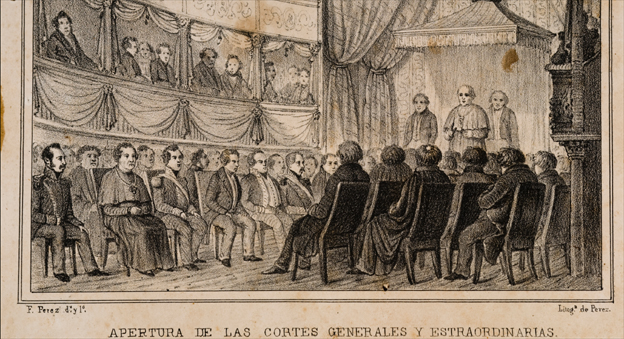 El 24 de septiembre de 1810 se reunieron las Cortes Extraordinarias  en la isla de León; el 20 de febrero de 1811 trasladaron su sede a Cádiz; el 19 de marzo de 1812 promulgaron la nueva Constitución; y el 20 de septiembre de 1813 clausuraron sus sesiones a los tres años de su inauguración.