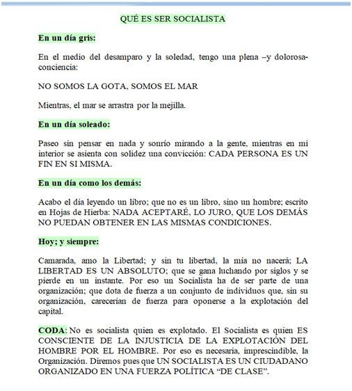 “La producción está orientada hacia el beneficio, no hacia el uso. No está garantizado que todos los que tienen capacidad y quieran trabajar puedan encontrar empleo; existe casi siempre un “ejército de parados”. El trabajador está constantemente atemorizado con perder su trabajo. El progreso tecnológico produce con frecuencia más desempleo en vez de facilitar la carga del trabajo para todos. La competencia ilimitada conduce a un desperdicio enorme de trabajo, y a amputar la conciencia social de los individuos. Considero esta mutilación de los individuos el peor mal del capitalismo. Estoy convencido de que hay solamente un camino para eliminar estos graves males, el establecimiento de una economía socialista, acompañado por un sistema educativo orientado hacia metas sociales. En una economía así, los medios de producción son poseídos por la sociedad y utilizados de una forma planificada. Una economía planificada que ajuste la producción a las necesidades de la comunidad, distribuiría el trabajo a realizar entre todos los capacitados para trabajar y garantizaría un sustento a cada hombre, mujer, y niño. La educación del individuo, además de promover sus propias capacidades naturales, procuraría desarrollar en él un sentido de la responsabilidad para sus compañeros-hombres en lugar de la glorificación del poder y del éxito que se da en nuestra sociedad actual. Sin embargo, es necesario recordar que una economía planificada puede estar acompañada de la completa esclavitud del individuo. ¿Cómo es posible, con una centralización de gran envergadura del poder político y económico, evitar que la burocracia llegue a ser todopoderosa y arrogante? ¿Cómo pueden estar protegidos los derechos del individuo y cómo asegurar un contrapeso democrático al poder de la burocracia?” (Filosofiadigital.com)