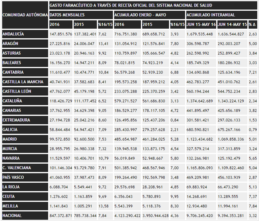 Los casos de precios astronómicos para los medicamentos de nueva generación en enfermedades mortales aparecen recurrentemente en los medios de comunicación (y siguen siendo batalla judicial algunos, como les contaremos en próximos posts de este boletín), pero debemos también fijarnos en el gasto farmacéutico de medicamentos para enfermedades más comunes –por numerosas- como la diabetes o la hipertensión, que significan igualmente márgenes de beneficio de vértigo.