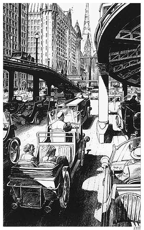 Hacía buen tiempo; el gaseomóvil circulaba por las calles recién despertadas, torciendo diestramente en las esquinas, subiendo las cuestas sin esfuerzo, y a veces deslizándose con sorprendente rapidez por las calzadas alquitranadas.