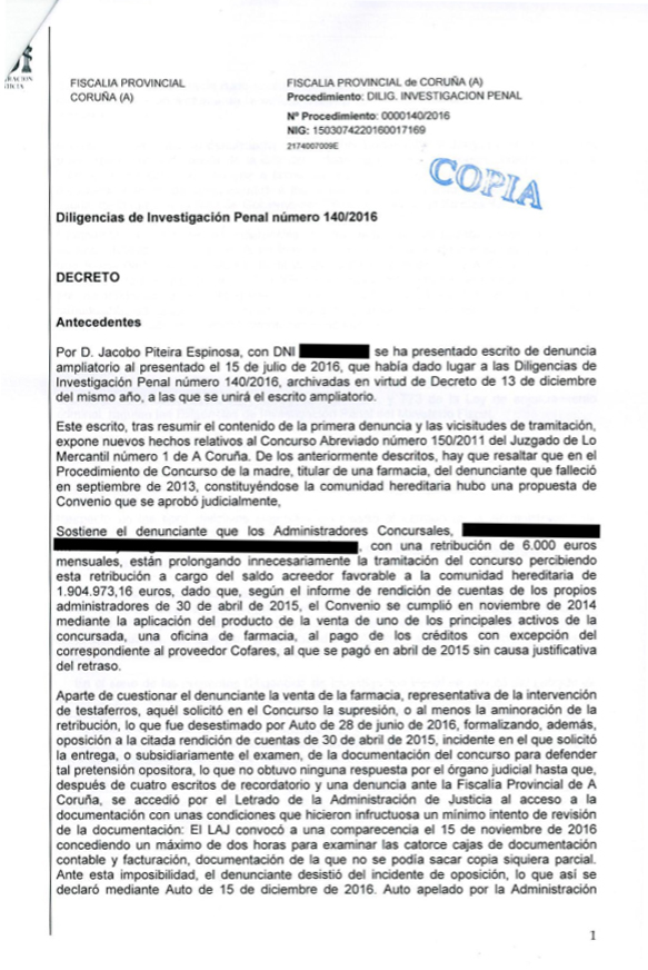 [2] Denuncia presentada ante Fiscalia Provincial de A Coruña en fecha 28 de abril de 2017