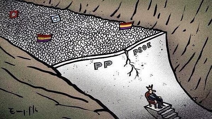 La conjunción de ambas medidas supone una amenaza absolutamente inaceptable en cualquier Estado definido como democrático y de derecho, para aquellos que profesen la ideología de un partido sustentado por siete millones novecientos mil votos, que gobierna con mano de hierro un país con cuarenta y siete millones y medio de habitantes, y que junto a la otra pata del bipartidismo de estos “otros” cuarenta años, el PSOE, ha colonizado de corrupción todos los órganos judiciales o de control que deberían garantizar la separación de poderes en que se fundamenta nuestro texto constitucional.