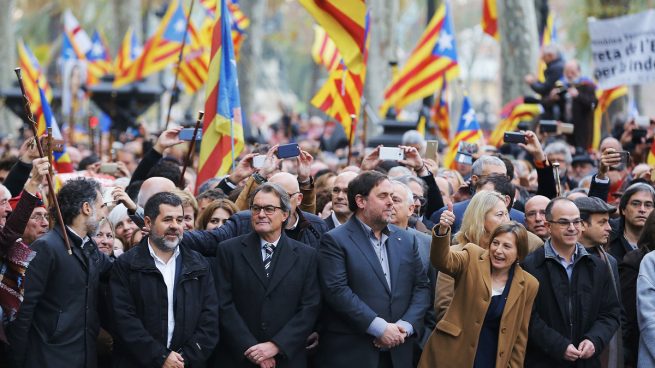 Artur Mas, Oriol Junqueras y Carme Forcadell, entre otros dirigentes independentistas. (EFE)
