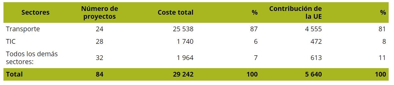 Mecanismo «Conectar Europa» (MCE): El Mecanismo «Conectar Europa» (MCE) presta ayuda financiera desde 2014 a tres sectores: la energía, el transporte y las tecnologías de la información y la comunicación (TIC). En estos tres ámbitos, el MCE determina las prioridades de inversión que deberían adoptarse en la próxima década, como los corredores de electricidad y de gas, el uso de energías renovables, la interconexión de los corredores de transporte y unos medios de transporte más limpios, las conexiones de banda ancha de alta velocidad y las redes digitales.