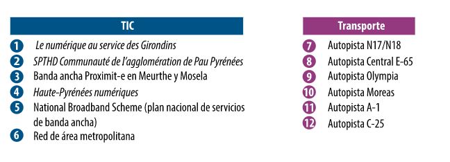 16 Habida cuenta de que los Estados miembros tienen interpretaciones y definiciones divergentes de lo que constituye una APP (por ejemplo, las concesiones se consideran APP en Grecia, pero no en Francia), el equipo auditor adoptó una interpretación más amplia de las APP, incluidas algunas formas de colaboración plurianual entre socios públicos y privados. Por ello, el Tribunal seleccionó dos proyectos de TIC en Irlanda, que las autoridades irlandesas no consideraron ni adjudicaron formalmente como APP, pero que comportan algunas características de APP.