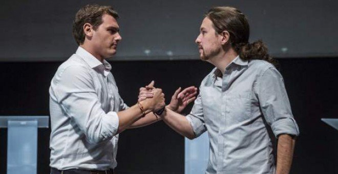 - 53 [73] Podemos, único partido que sube en la encuesta de Metroscopia, que da como ganador a Ciudadanos