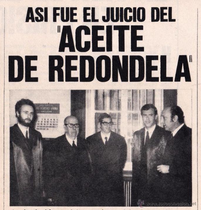 En el conocido popularmente como el “Aceite de Redondela” estaba implicado nada menos que Nicolás Franco Bahamonde, hermano del Caudillo. Presidía el tribunal el padre de Mariano Rajoy, Mariano Rajoy Sobredo, quien cortó por lo sano todas las preguntas del abogado de un modesto empleado.