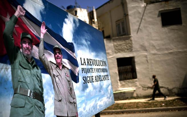 Un póster de los hermanos Castro en La Habana, Cuba (AP)