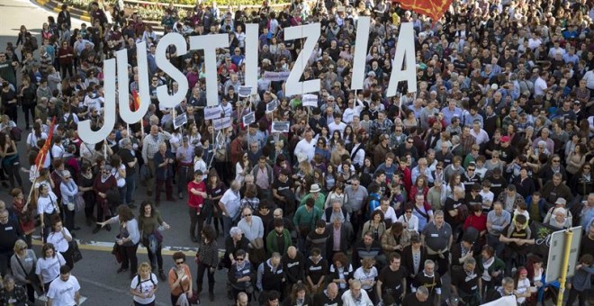 Miles de personas se han manifestado en Pamplona pidiendo "justicia" para los ocho jóvenes de Alsasua. EFE