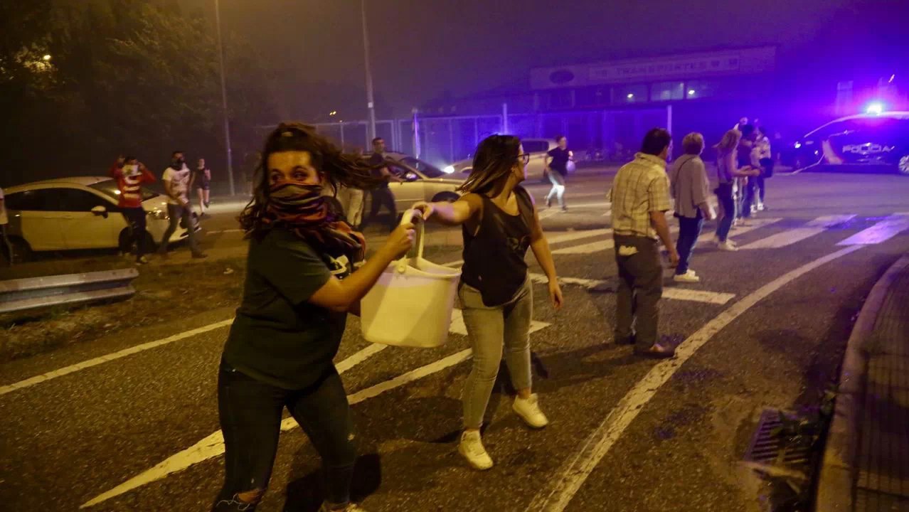 Habitantes de Vigo en la calle intentando apagar el fuego
