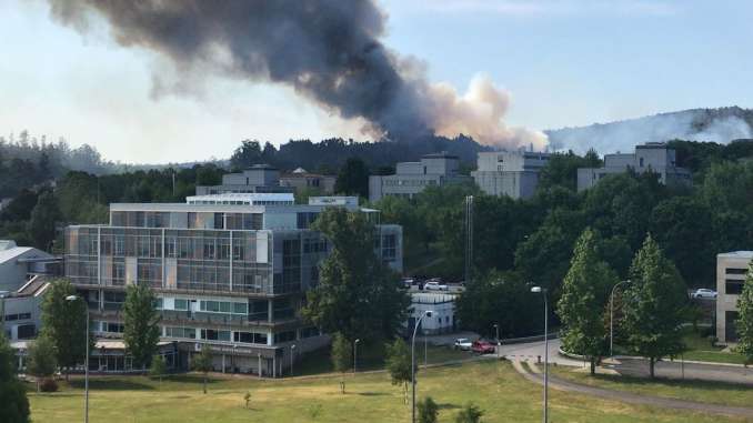 Una densa humareda cubre el Campus Vida a consecuencia del incendio en San Paio - FOTO: A.I.S.