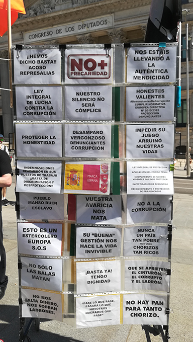 Hoy estamos exigiendo  a  nuestros representantes en  el  Congreso de  los  Diputados  que revise  y acelere  la  protección  a  los  alertadores,  que   se  reúnan con  las  asociaciones anticorrupción y con  los denunciantes y que  se introduzcan las modificaciones necesarias que garanticen nuestra seguridad.