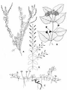 b) Las florescencias (o disyunciones) de madurez, que producen periódicamente los "verticilos".
