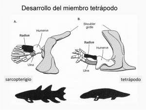 El hecho de que todos los Anfibios, Reptiles y Mamíferos tengan cuatro patas y sólo cuatro, podría en rigor aplicarse, por una pura convergencia, hacia un modo particularmente simple de locomoción (los Insectos, no obstante, nunca tienen menos de seis patas). Pero ¿cómo justificar por razones puramente mecánicas la estructura completamente semejante de estos cuatro apéndices? Por delante, el húmero único; después, los dos huesos del antebrazo, y luego los cinco radios de la mano... ¿No se trata aquí, de nuevo, de una de estas combinaciones accidentales que no pudieron ser autodescubiertas y realizadas más que por una sola vez? Aquí, pues, reaparece de nuevo la conclusión ya instalada en nuestro espíritu, como en el caso de la trituberculia en los Mamíferos. A pesar de su extraordinaria variedad, los animales terrestres pulmonados no representan sino variaciones en andamiaje múltiple de una solución muy particular adoptada por la Vida.