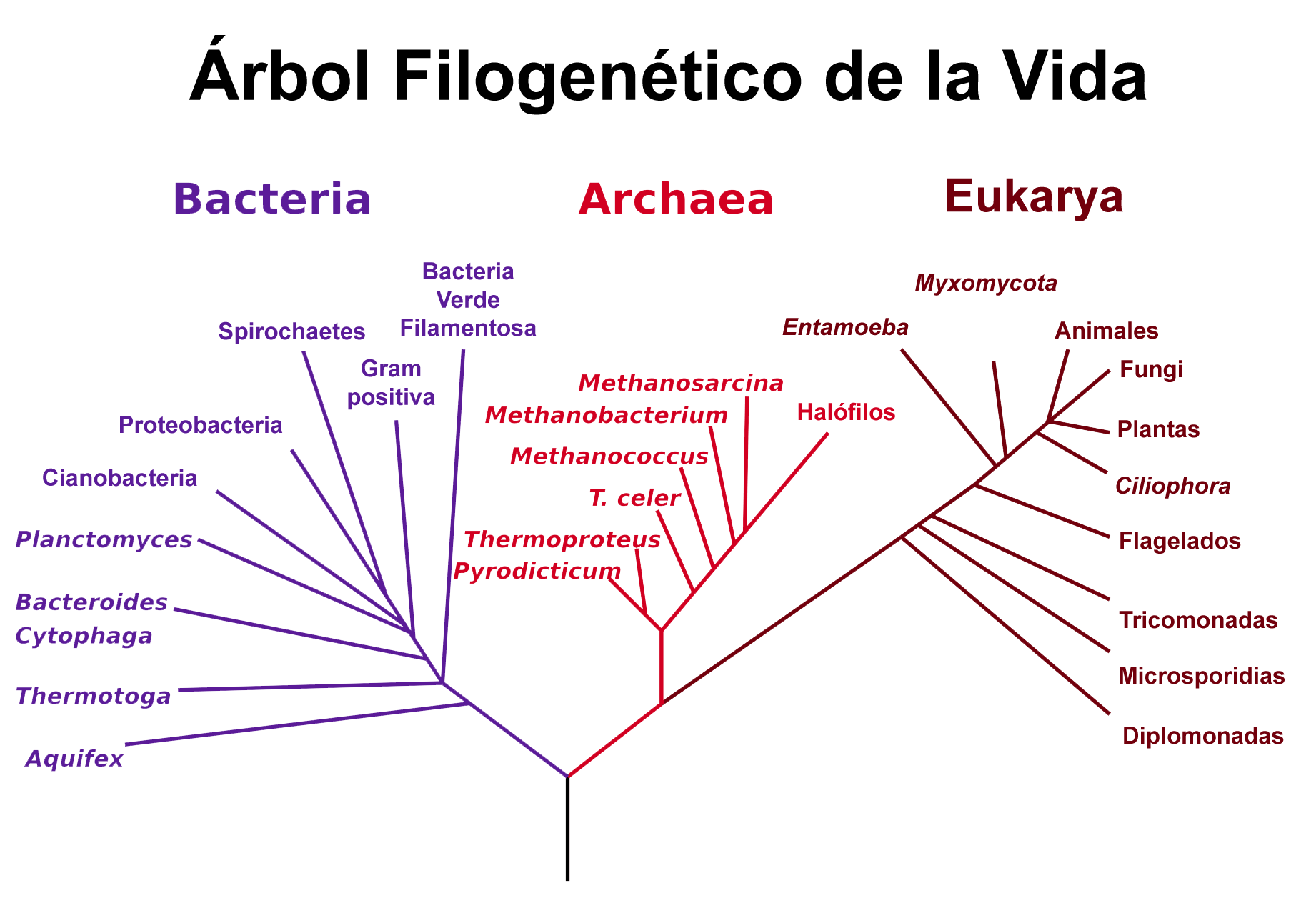 Todo ello emerge ciertamente (pero sin que podamos decir de qué manera: tan profundo se ha hecho el corte por efecto de la Duración) de otro mundo inverosímilmente antiguo y multiforme: Infusorios, Protozoos diversos, Bacterias (células libres, desnudas o con caparazones), en los cuales los Reinos de la Vida se confunden y la sistemática fracasa. ¿Animales o Vegetales? Estas palabras no tienen ya sentido. ¿Apilamiento de Capas y de Ramas, o "micelio" de fibras confusas, como el de un Hongo? Nada sabemos de ello. Así como tampoco nada podríamos decir sobre de dónde ha germinado todo esa. A partir del Precámbrico, también los Unicelulares pierden, a su vez, todo esqueleto de sílice o de caliza. Y pari passu, se pierde definitivamente a nuestra mirada, desde sus raíces, el Árbol de la Vida en la blandura de los tejidos y en la metamorfosis de los limos originales.