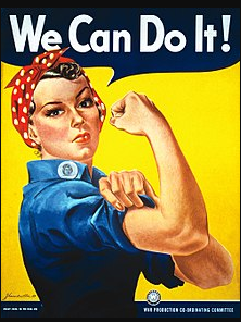 Hoy voy a hablar de uno de los emblemas o símbolos utilizados para recrear la imagen de mujer “empoderada”, la ilustración de J. Howard Miller que podemos titular “We can do it!” (¡Nosotros/as podemos hacerlo!):