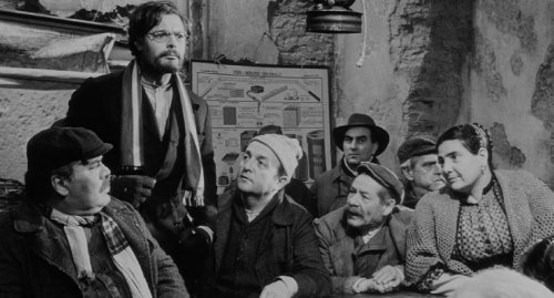 Sinopsis: La acción se desarrolla a finales del siglo XIX en una fábrica textil de Turín. Los obreros reivindican la reducción de la jornada laboral de 14 a 13 horas, para evitar los accidentes que provoca el cansancio. La aparición del extraño y entrañable profesor Sinigaglia (Marcello Mastroianni) hace que la protesta desemboque en huelga. La película, que oscila entre el sainete y la tragedia, presenta una galería de personajes antagónicos: ilusionados unos, reticentes otros, intrépidos y cobardes. (FILMAFFINITY)