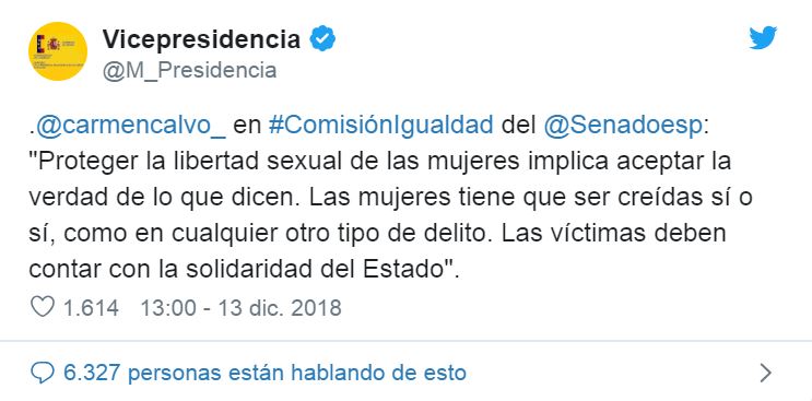 “Es extraordinariamente dramática la violencia que están sufriendo las mujeres y esto hay que resolverlo. […] Yo creo que los jueces penales no están acostumbrados a proteger, sino a juzgar, y a juzgar concretamente con el principio de la presunción de inocencia, y eso lo primero que te dice es que hay que poner en duda la declaración del testigo de cargo. Están muriendo muchas mujeres, así que algo no va bien. Tenemos que pensar qué está fallando”.
