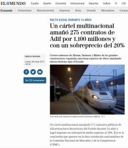 Un cártel multinacional amañó 275 contratos de Adif por 1.100 millones y con un sobreprecio del 20%