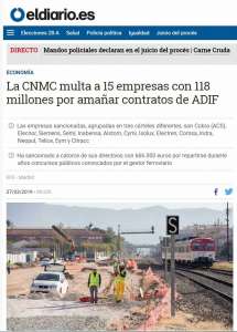 La CNMC multa a 15 empresas con 118 millones por amañar contratos de ADIF