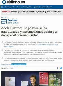 Adela Cortina: "La política se ha emotivizado y las emociones están por debajo del razonamiento"