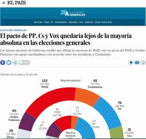 El pacto de PP, Cs y Vox quedaría lejos de la mayoría absoluta en las elecciones generales