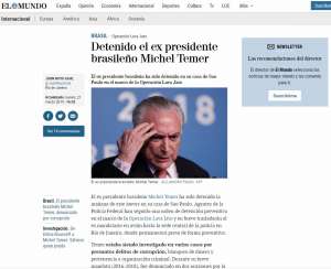 Detenido el ex presidente brasileño Michel Temer