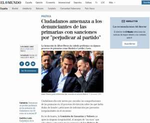Ciudadanos amenaza a los denunciantes de las primarias con sanciones por "perjudicar al partido"