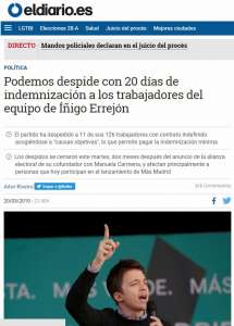 Podemos despide con 20 días de indemnización a los trabajadores del equipo de Íñigo Errejón