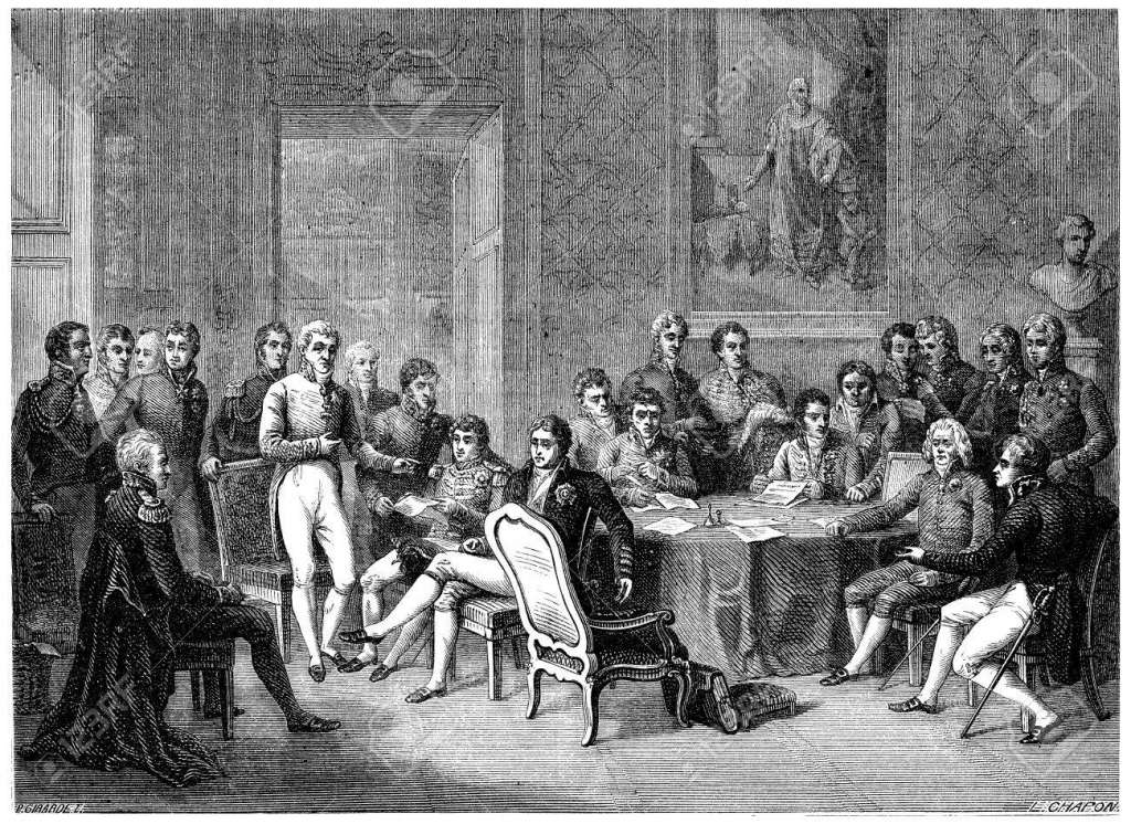 Congress of Vienna, vintage engraved illustration. History of France – 1885.