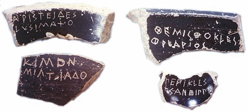 Esta institución nació en el año 487 a.C como medida preventiva ante posibles intrigas y conjuras internas que pudieran debilitar la democracia griega… Sin embargo, con el tiempo se fue desvirtuando y comenzó a ser utilizada para deshacerse de personajes incómodos, políticos influyentes o simplemente como una manera cómoda de buscar “chivos expiatorios”.