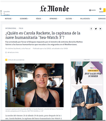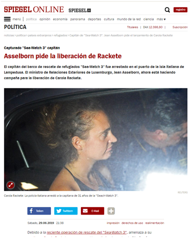 • Más información: Italia: Pia Klemp, una capitana en el juzgado por salvar a personas en peligro en el mar . Un artículo deMarianne Arens. (WSWS) [20 de junio de 2019].