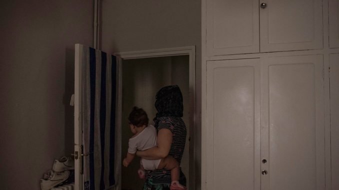 L. H. con su hija en la casa que comparten con otras nueve mujeres en España. Credit María Contreras Coll para The New York Times