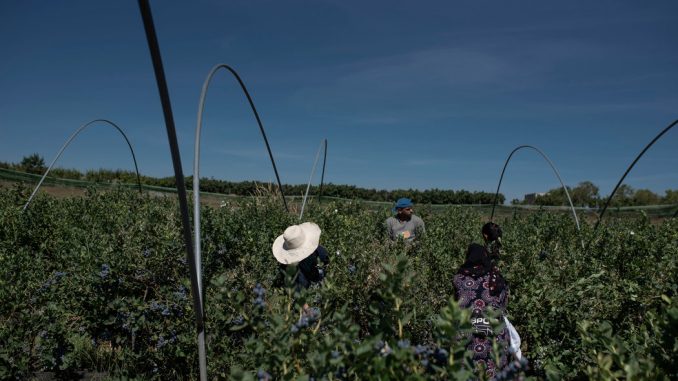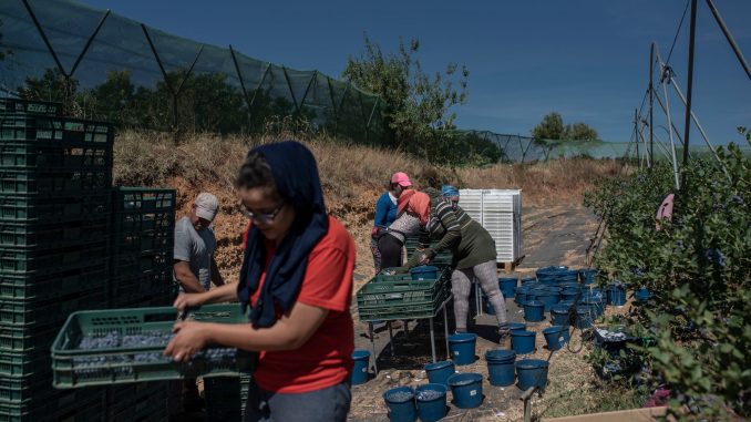 Cosechando moras azules en una granja española Credit María Contreras Coll para The New York Times