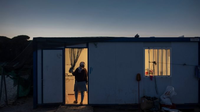 Una temporera marroquí en una cocina compartida en Finca La Cañada, en Almonte, Huelva, España Credit María Contreras Coll para The New York Times