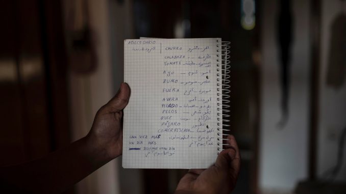 Notas usadas por una temporera para aprender español. Credit María Contreras Coll para The New York Times