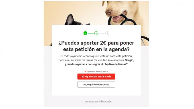 Este sistema cambió en 2016. "Hasta ahora, cuando firmabas una petición podías ver un anuncio de alguna ONG. [...] A partir de ahora ya no verás este tipo de anuncios. Lo que verás son tres opciones para poder elegir cómo ayudar a que las peticiones lleguen más lejos y puedan conseguir victorias", explicaba la compañía en su blog.