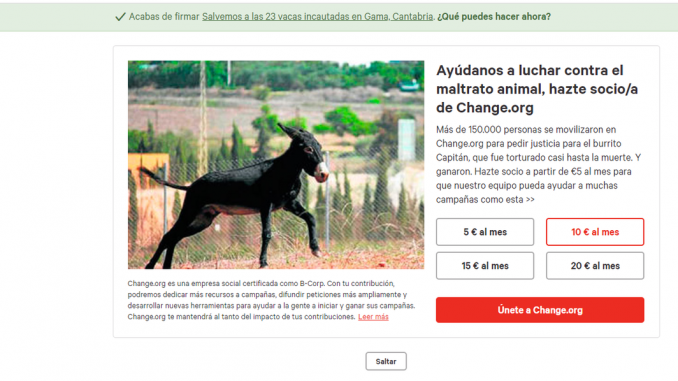 Por eso, la investigadora asegura que la forma de participación que propone Change es “de muy bajo nivel”, pues lo que busca es “una viralización de sus peticiones”. Cuantas más personas compartan sus datos, mayor será el beneficio de la plataforma.