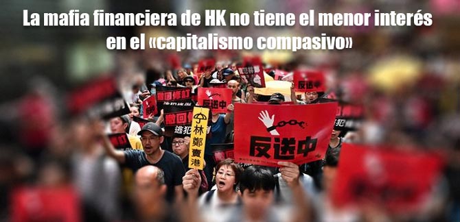La mafia económica que gobierna HK vio el peligro y rápidamente movió sus peones. Primero, en el parlamento. Segundo, en el exterior (con rápida recepción en EEUU y Gran Bretaña). Tercero, en la calle. El argumento: «socava la libertad económica». Pero como eso no era ni suficiente ni creíble, se apeló a lo de siempre: «»democracia». Y se argumentó el temor a que los «defensores de los derechos humanos» fuesen extraditados a China.