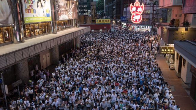 Sería la mayor protesta en Hong Kong desde que el territorio revirtió a dominio chino en 1997. Sin embargo, las autoridades colocaron la cifra de manifestantes en máximo 240.000.