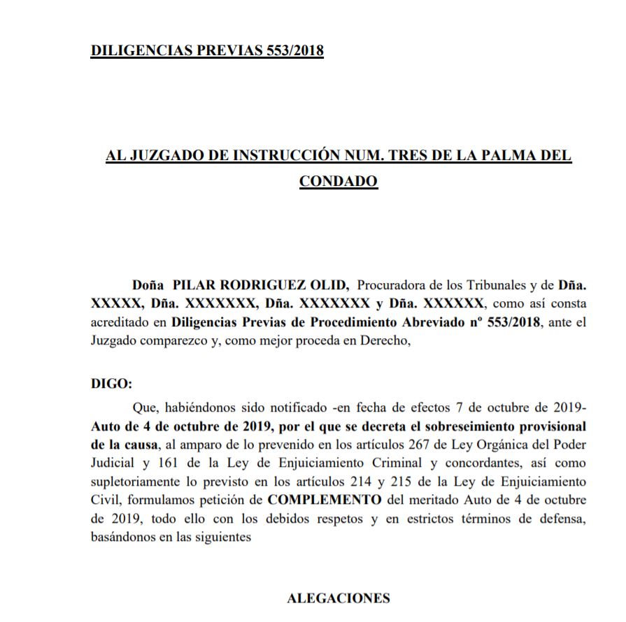 El pasado viernes, el juez citó a las denunciantes para que declarasen por videoconferencia, pero, como se relata en esta misma página, ninguna de ellas compareció en la sede judicial, tras lo que el instructor ha dictado un auto, de fecha 4 de octubre, en el que vuelve a acordar el sobreseimiento provisional y el archivo de la causa