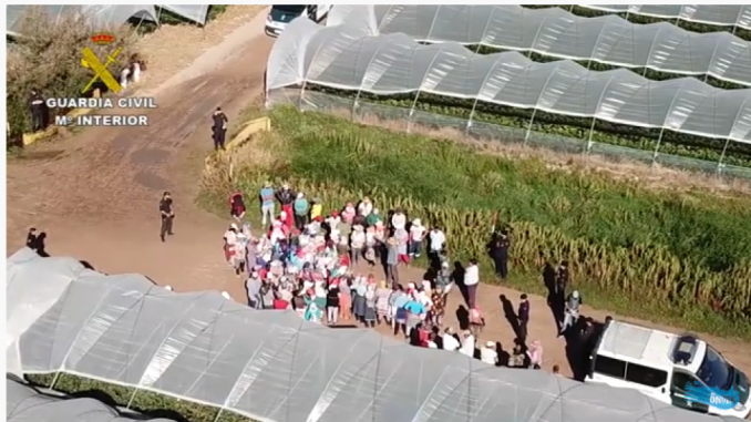 La intervención de la Guardia Civil, autorizada por un juzgado de Jaén tras varios meses de laboriosa investigación desarrollada por la UCO, tuvo lugar durante tres días a finales de mayo de este año (como informó entonces La Mar de Onuba), y el grueso del operativo se centró en cuatro grandes explotaciones agrícolas de las localidades onubenses de Almonte y La Palma del Condado. 145 trabajadores que prestaban servicios «en condiciones similares a la esclavitud» (según explicó ayer jueves la Subdelegada del Gobierno en Jaén, Catalina Madueño), fueron identificados como «víctimas de un delito de trata».