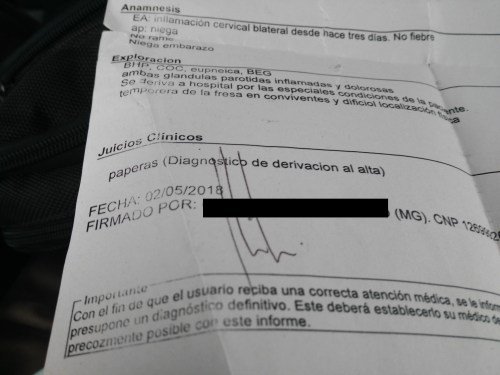 También consta en la prueba aportada por las temporeras un informe médico que acredita que una de ellas fue diagnosticada de parotiditis (paperas) el 2 de mayo. La trabajadora asegura que continuó trabajando cuando le era requerido hasta que la empresa le comunicó la finalización de su contrato. Fuentes del centro médico donde fue asistida, manifestaron varias semanas después a La Mar de Onuba que el médico ACL (Nº Col. 21*****4), quien diagnosticó la enfermedad -que no es grave, pero sí altamente contagiosa-, había hecho constar que por “las especiales condiciones de la paciente, temporera de la fresa en conviventes y difícil localización física, había prescrito «su inmediato traslado a un centro hospitalario para la realización de los estudios pertinentes, y su aislamiento hasta tener confirmación de su impresión diagnóstica, al objeto de evitar que el virus fuera transferido a otras personas». Las mismas  fuentes confirmaron a esta revista que la consulta médica tuvo lugar en presencia de otra empleada de la empresa, ya que la demandante no habla español y precisaba de intérprete. Toda la información sobre la exploración realizada por el médico y sus recomendaciones fue transmitida a través de esta acompañante. Según consta en la denuncia ante la Audiencia Nacional, la trabajadora asegura que cuando la llevaron al Hospital, fueron la manijera y otra persona «a ver al médico» y que a ella la dejaron «esperando en el coche». Al regresar ambos al coche, «volvieron al campo de trabajo».