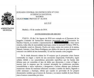 El pasado 12 de septiembre, se conocieron las tres primeras de las diez sentencias que deben dictarse en los Juzgados de lo Social de Huelva. En ellas, que han sido recurridas, la magistrada titular del número dos, Mª Inmaculada Liñán, falla en contra de las denunciantes tras valorar toda la prueba propuesta por la defensa de la empresa y de los hermanos Matos, propìetarios de Doñana 1998, y rechazar la aportada por los abogados de las mujeres marroquíes, que incluyen hasta nueve horas y media de archivos digitales de audio y vídeo, debidamente fechados y de origen identificado. Esta revista ha tenido acceso a toda esa documental impresa y audiovisual, algunas de las cuales ha reproducido desde que -presuntamente- tuvieron lugar los hechos denunciados. La jueza Liñán (como antes los jueces Serrano y Sesma de La Palma del Condado, que coinciden en que «no aparece debidamente justificada la perpetración del delito que ha dado motivo a la formación de la causa» y han optado por el sobreseimiento provisional de sendos procedimientos), concluye que «nada de lo que se narra en demanda alcanza visos mínimos de verosimilitud«.