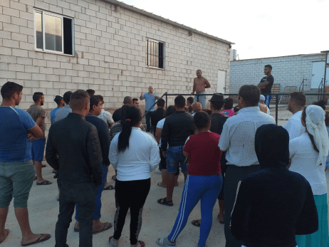 Luciano Gómez, secretario general de FICA UGT Huelva,se dirige a un grupo de trabajadores rumanos liberados de la red de trata gracias a la operación Urofort
