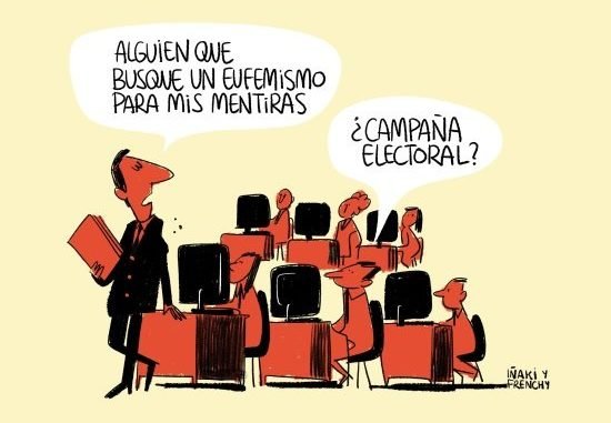 Se usa y abusa de los eufemismos para que lo malo nos parezca bueno; y lo desagradable, atractivo. Con ello, la población no se indigna y si no se indigna no se moviliza. Voy a poner algunos de estos eufemismos, algunos resultan grotescos, que se utilizaron recientemente en esta España nuestra. Los brutales ataques a los servicios públicos puestos en marcha en Castilla La Mancha por Dolores de Cospedal, fueron camuflados con el rimbombante vocablo de “Plan de Garantía de los Servicios Sociales Básicos”. La vergonzosa amnistía fiscal de Cristóbal Montoro con el no menos rimbombante “proceso de regularización de activos ocultos”. En una entrevista al exministro José Manuel García-Margallo, a la pregunta sobre qué le parecía las mentiras de Cristina Cifuentes, contestó, hace falta tener cuajo, “si parece que ha economizado la verdad”. Flexibilidad en el despido = despido sin costo para el empresario. Recogida de beneficios = pastón que entra en las arcas de los bancos y grandes empresas. Es alucinante.