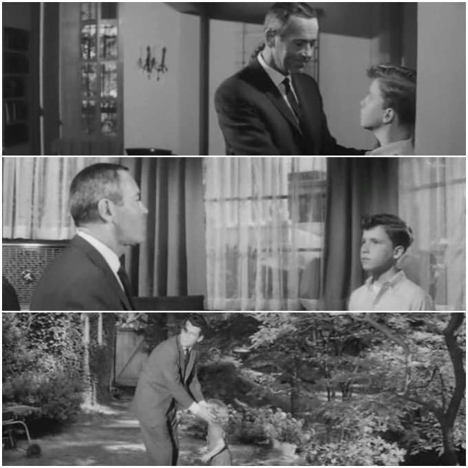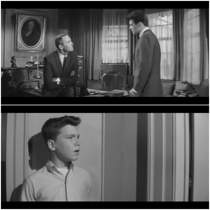 El político moderno. Abraza a su hijo, el aire del plano pesa sobre su espalda: todas las cosas que jamás le contará. El despacho, porque no hay más hogar. Las cortinas tupidas esconden lo que pasan, la mirada de Henry Fonda como ese flexo que nunca se aparta. Leffinwell es la clase de persona que, al mirar el sol desde la ventana de un autobús, nunca se fija en el sol sino en las manchas del cristal, como si ya estuviera preparado para el día en el que sol llorará lágrimas de polvo. Frente a ese padre que enreda al hijo, Brigham Anderson es el político moderno condenado que abraza a su hija en un jardín abierto, sin cortinas.