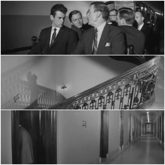 Porque Brigham Anderson es idealismo roto. A través del trenecito que conecta los pasillos subterráneos del poder Preminger recuerda que este es un filme sobre travellings humanos en el que el ascenso y la caída del poder depende de pasos en falso y no de conversaciones en ascensores. En la subida de los peldaños del edificio vacío, Anderson cae. En el pasillo ahora vacío, Anderson entra en su despacho, un agujero más en esa colmena de oficinistas que soñaron con ser algo más. En esa subtrama — dolorosamente anclada al pasado homófobo — Preminger muestra que más allá del jardín del padre se esconde una jungla de adultos. Ackerman lo entiende, a pesar de que sus disputas en el Senado se narren en cortes y plano-contraplano, porque lo suyo no es un diálogo sino una exhibición de vanidades.