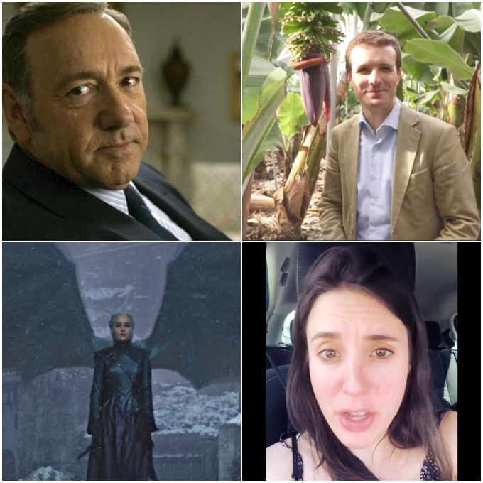 La imagen del político ha quedado recluida en el primer plano. Parece que toda idea de estética y reglas del juego han de ser embutidas en el envoltorio de una serie evento, en la hipérbole del músculo político en plantaciones de plátanos, bajo alas de dragones o aterido por el ruido de un coche en movimiento en una versión de la revolución pequeñoburguesa del crepitar de los trenes de la vanguardia del cine soviético. ¿Dónde quedan los espacios de representación, el diálogo en esas ficciones empeñadas en refugiarse en el artificio de la sentencia?, ¿qué ha sido del eje de miradas entre iguales, más allá de ese primer plano del político devorador de imágenes de poder? Entre tiranos y próceres no hay hueco para el gris, mucho menos para el de la materia gris. Imágenes políticas pobres, primeros planos que no revelan el rostro sino la textura del maquillaje y el brillo del flash en la pupila dilatando las ansias de poder. En la época del big data, de la política del hiperespacio y la cibercultura, parece que todo debate se desarrolla en primeros planos, en imágenes satelitales simuladas por Google o caracteres que no intercambian más diálogo que la acción del like o el compartir.